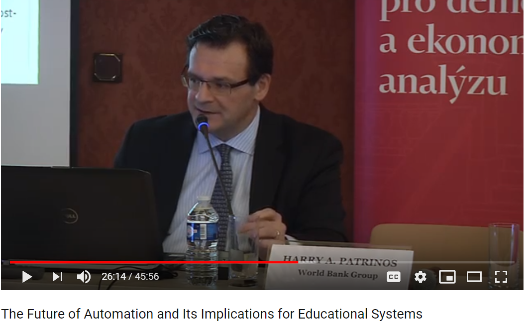 My presentation at the IDEA think tank of CERGE-EI: The Future of Automation and Its Implications for Educational Systems, November 12, 2018, Prague, Czech Republic | Chair: Daniel Münich