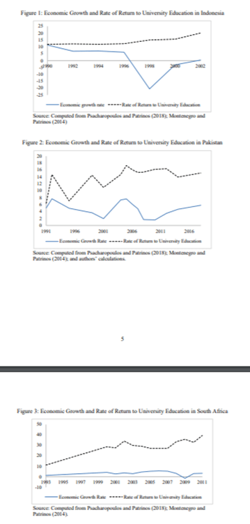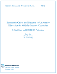 Economic Crises and Returns to University Education in Middle-Income Countries: Stylized Facts and COVID-19 Projections | The rate of return to university education increases during crises. New working paper with Tazeen Fasih, Najeeb Shafiq documents stylized facts on rates of returns to education during economic crises. It shows from three middle-income countries—Indonesia, Pakistan, and South Africa—that the rate of return to university education (versus secondary education) has increased during economic crises. Based on this stylized fact, the paper projects that the returns for university graduates may increase by at least one-quarter to one-third during the COVID-19……