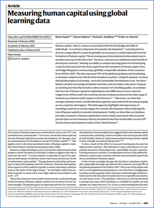 Angrist, N, S Djankov, P K Goldberg and H A Patrinos (2021), Measuring human capital using global learning data. Nature 592, 403–408