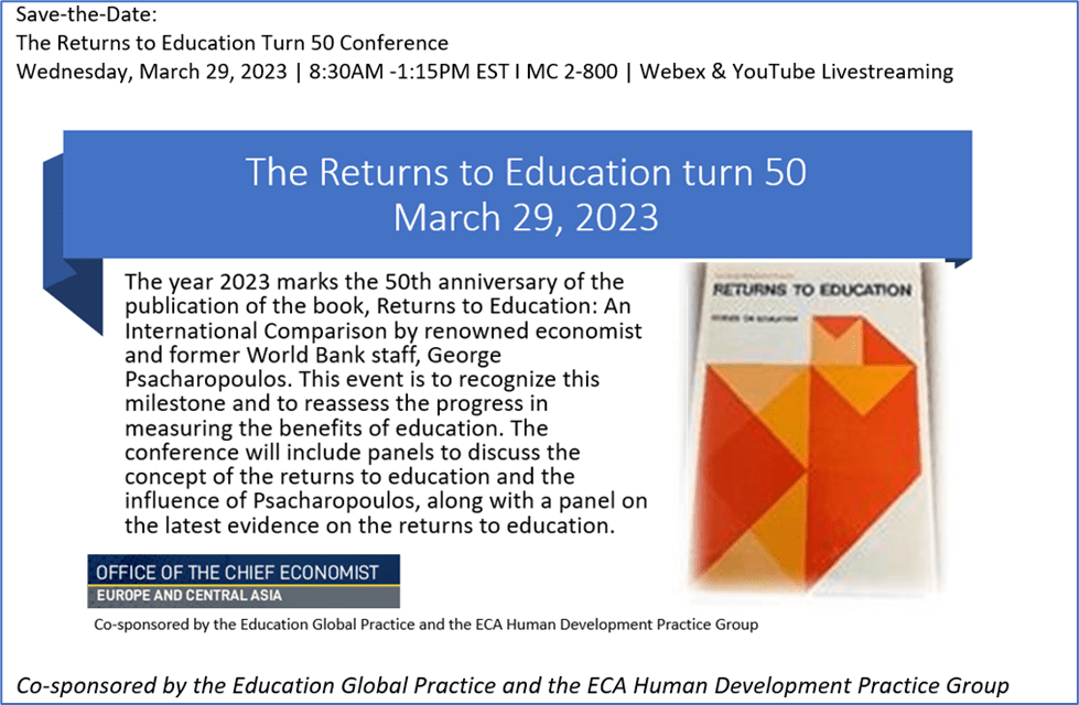 The rate of return to women’s education exceeds that of males by two percentage points. The gap has increased. Education is an excellent investment for women and girls, and a development priority.