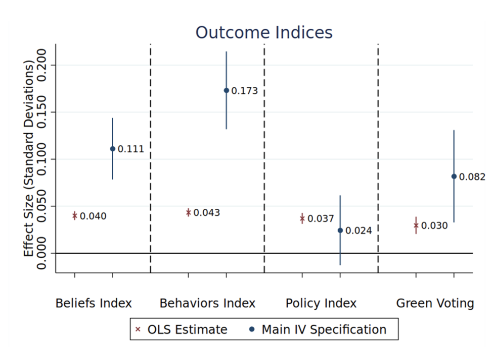 The untapped potential of education in the battle against climate change | People with more education are more likely to see climate change as a major threat. To identify whether education actually causes pro-climate beliefs, this column analyses changes in climate-related beliefs and behaviors following reforms of national compulsory-schooling laws in Europe that increased average educational attainment. Relative to the status quo, an additional year of education leads to increases of 4.5% in pro-climate beliefs, 7.8% in behaviors, 1.2% in policy preferences, and 28.2% in voting for green parties. Expanding general education should be added to the approaches considered in tackling climate change.