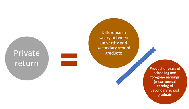 Taking a concrete example, the private returns to university education can be estimated by the formula: