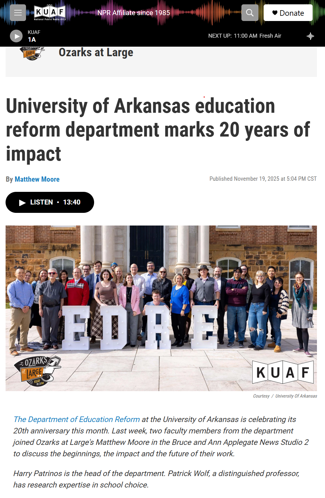 You can hear the whole interview with me and Patrick Wolf here: https://www.kuaf.com/show/ozarks-at-large/2025-11-19/university-of-arkansas-education-reform-department-marks-20-years-of-impact